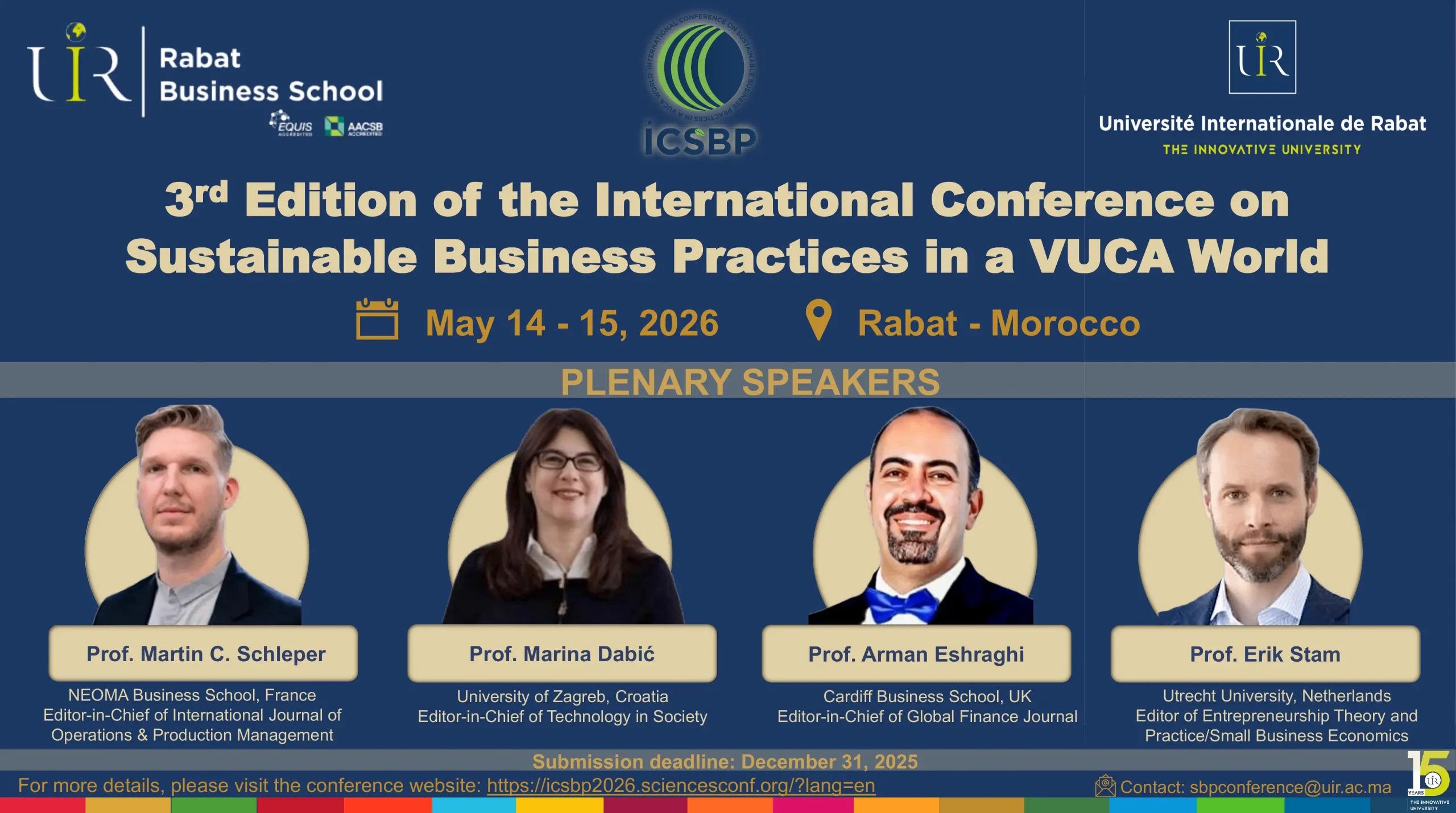 décembre 25, 2025International Conference on Sustainable Business Practices in a VUCA World_ICSBP2026Dear all, The 3rd Edition of the International Conference on Sustainable…Plus de détails