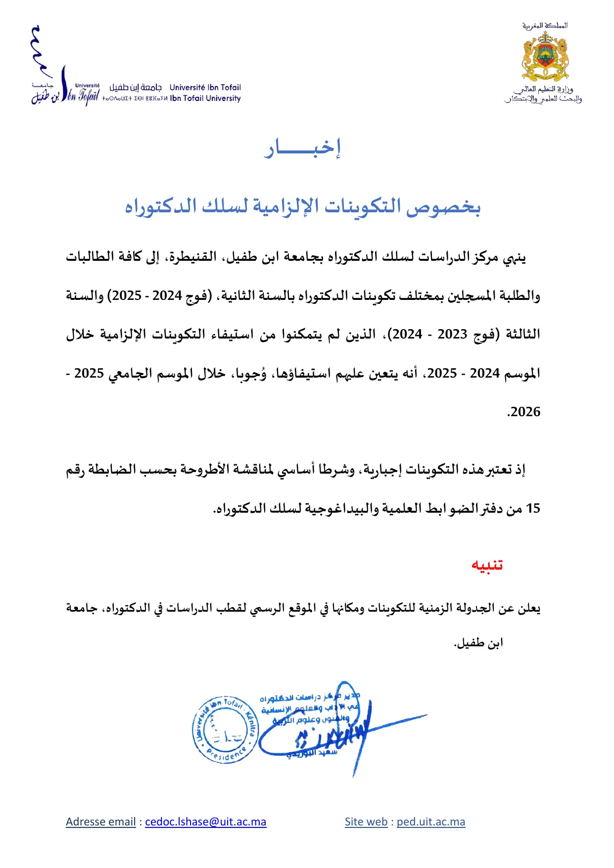 Nous informons les doctorants (tes) que le planning des enseignements des modules obligatoires du cycle doctoral a été modifié. Nous vous prions de bien vouloir consulter la version mise à jour.